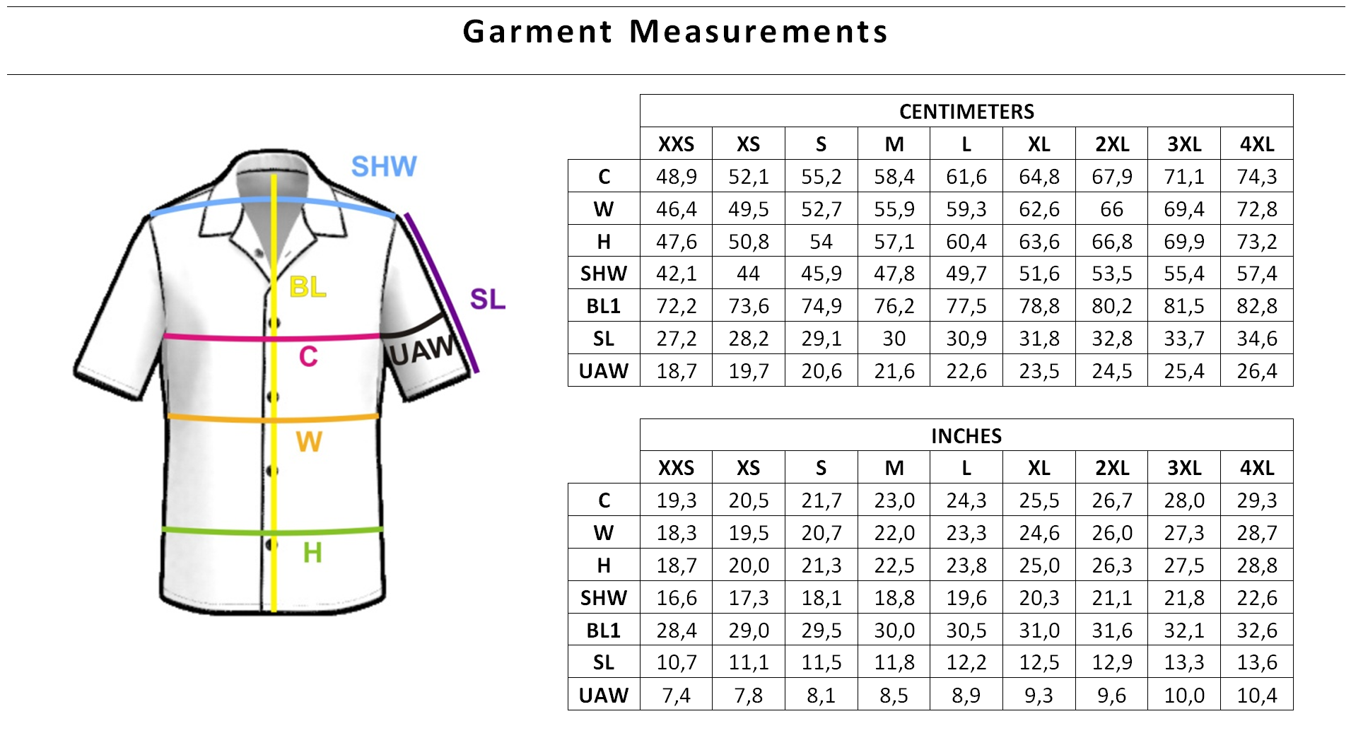 Garment Measurements: