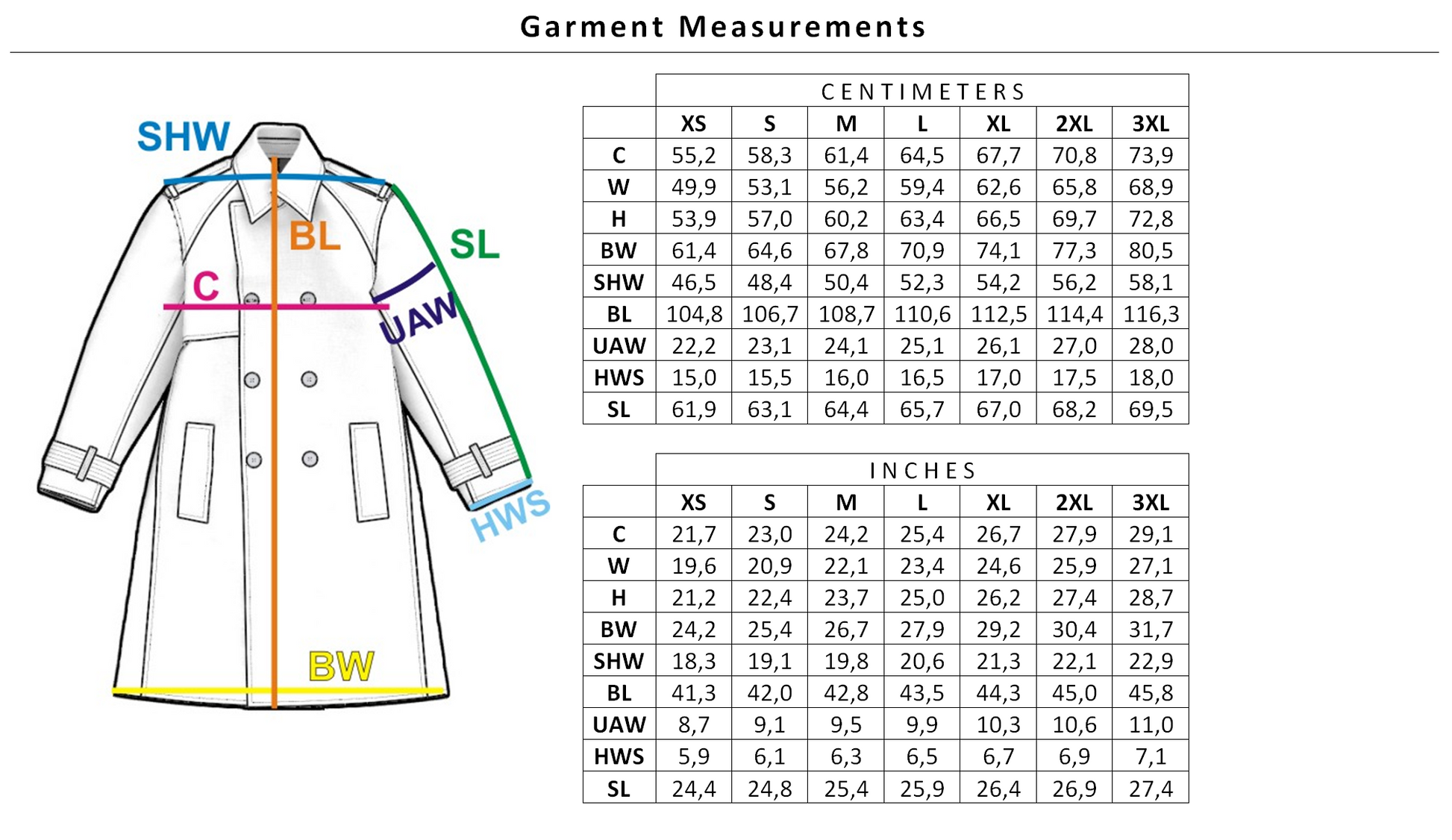 Garment Measurements: