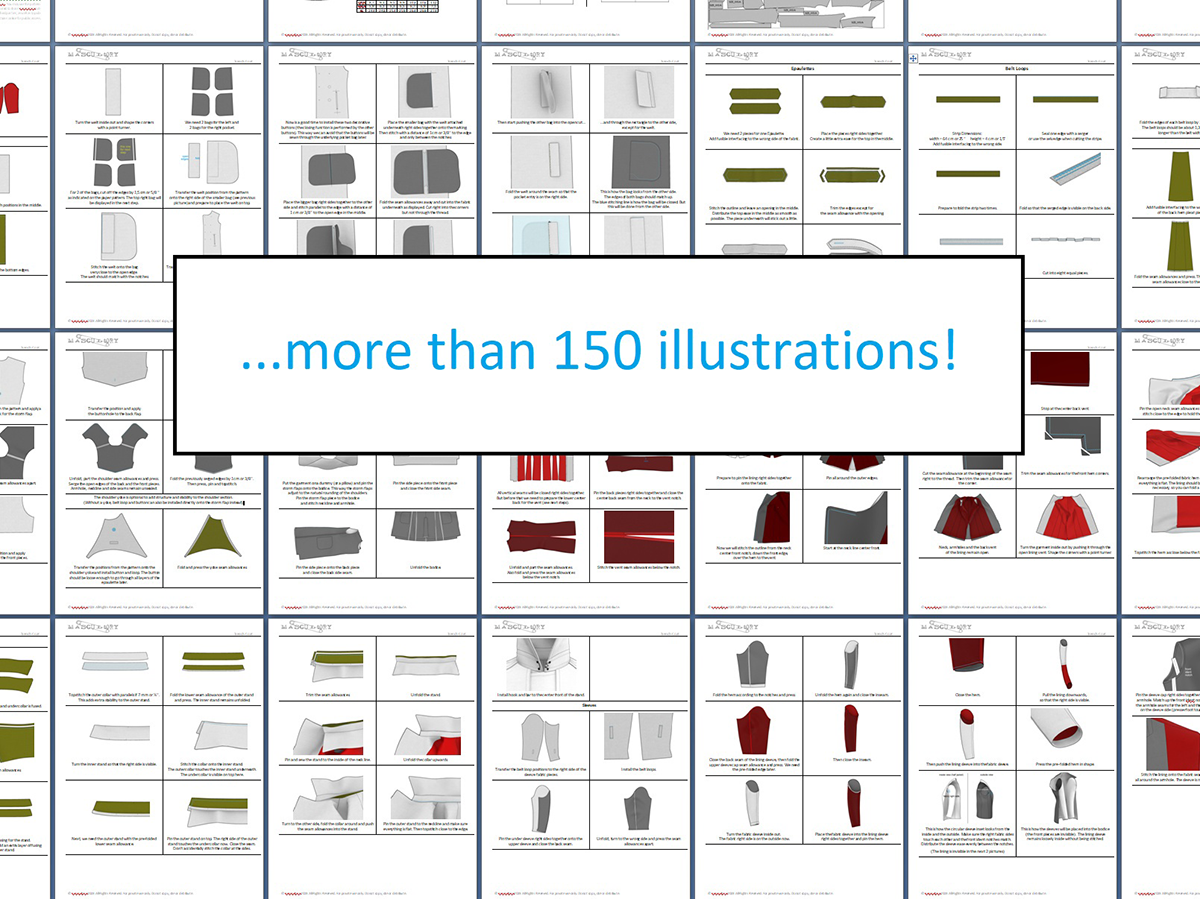 The pattern comes with comprehensive sewing instructions and over 150 illustrations.