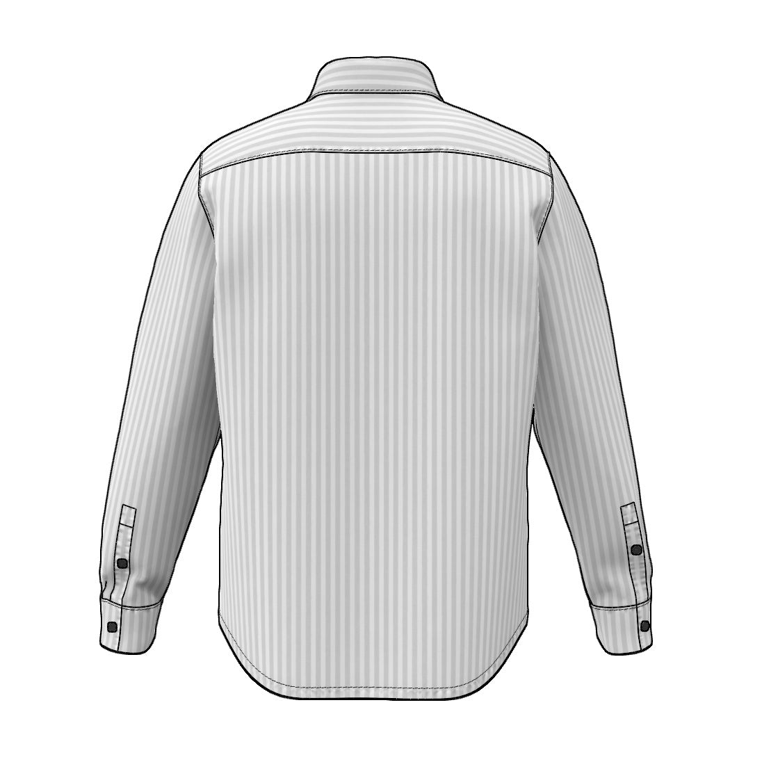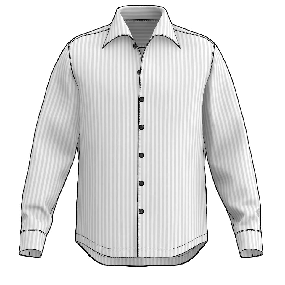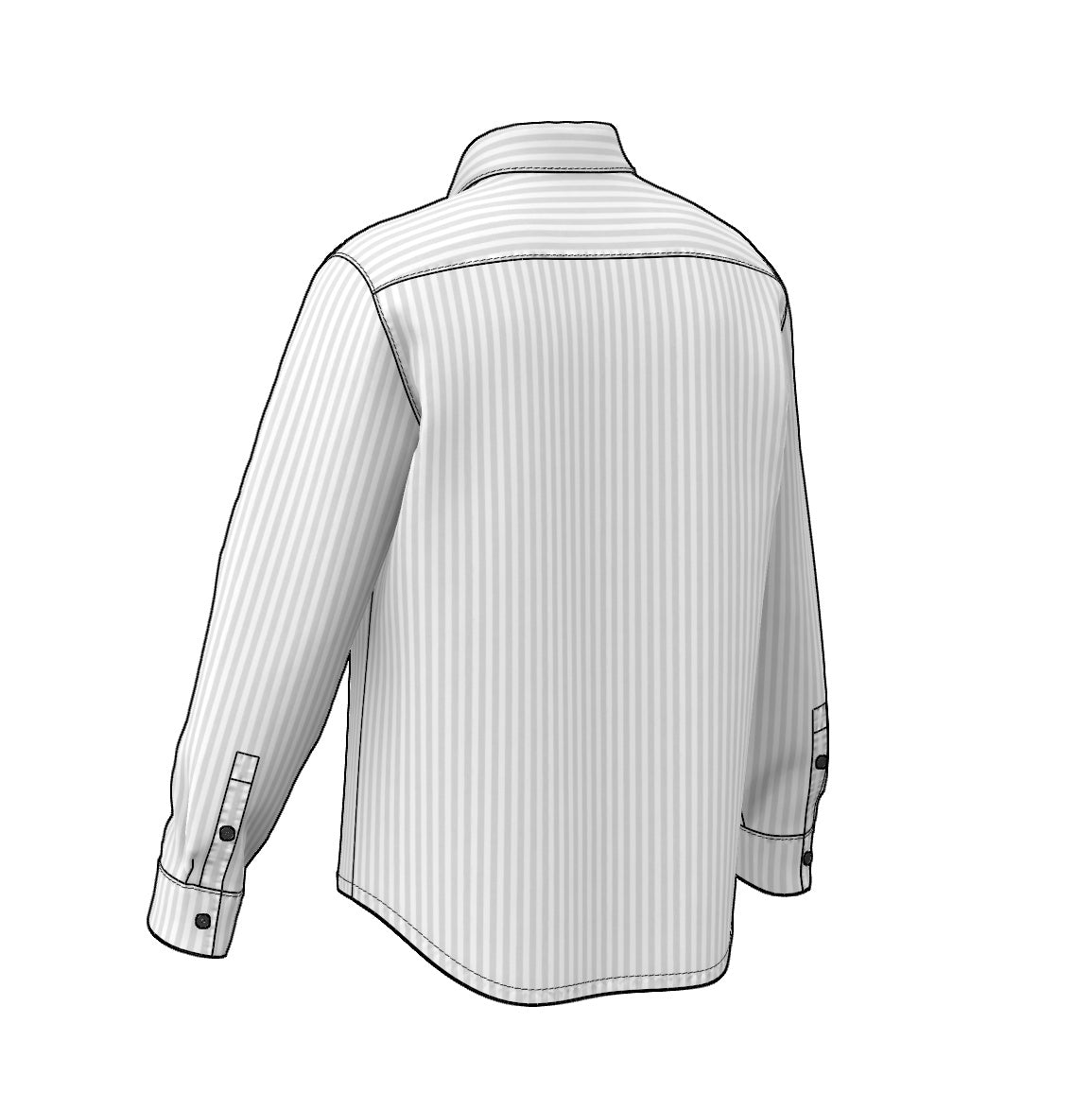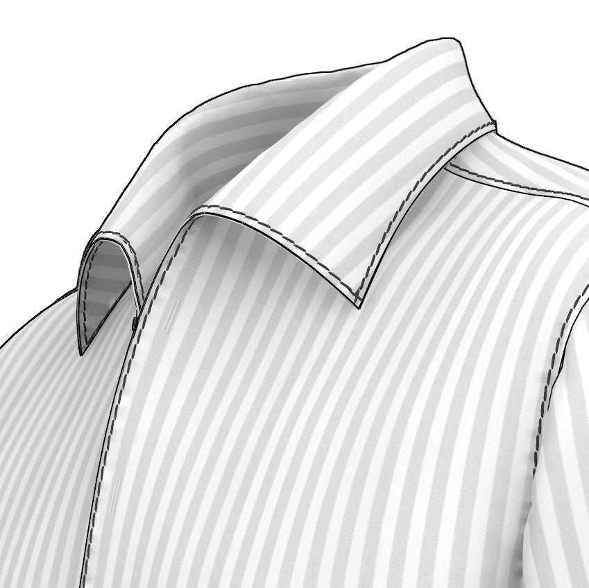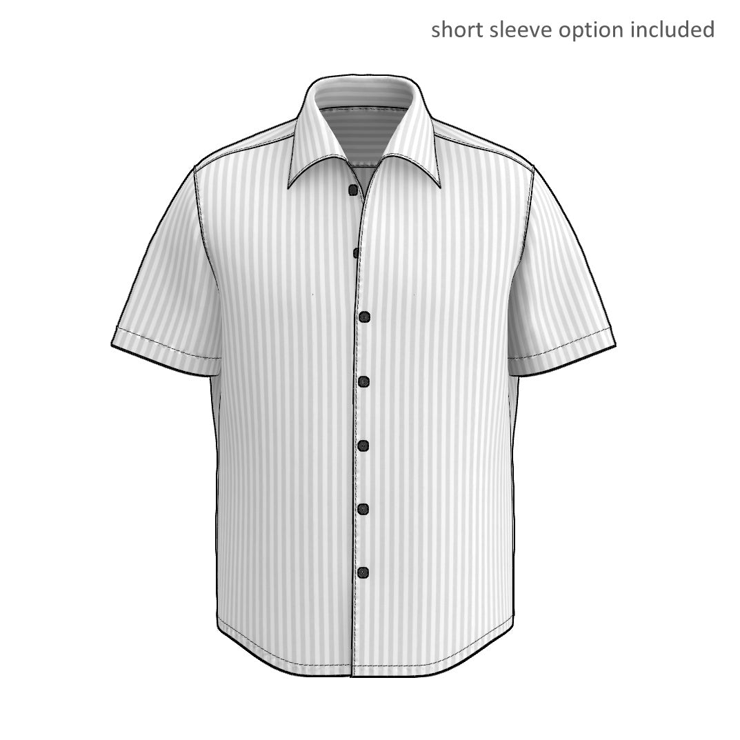 Digital Sewing Pattern and Instructions for sewing a cooper collar shirt. The style has a front button placket, a back yoke, long sleeves with vents and cuffs and a short sleeve option.