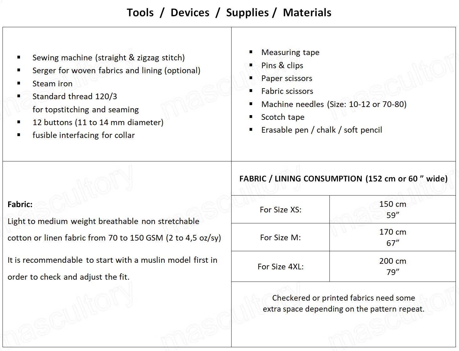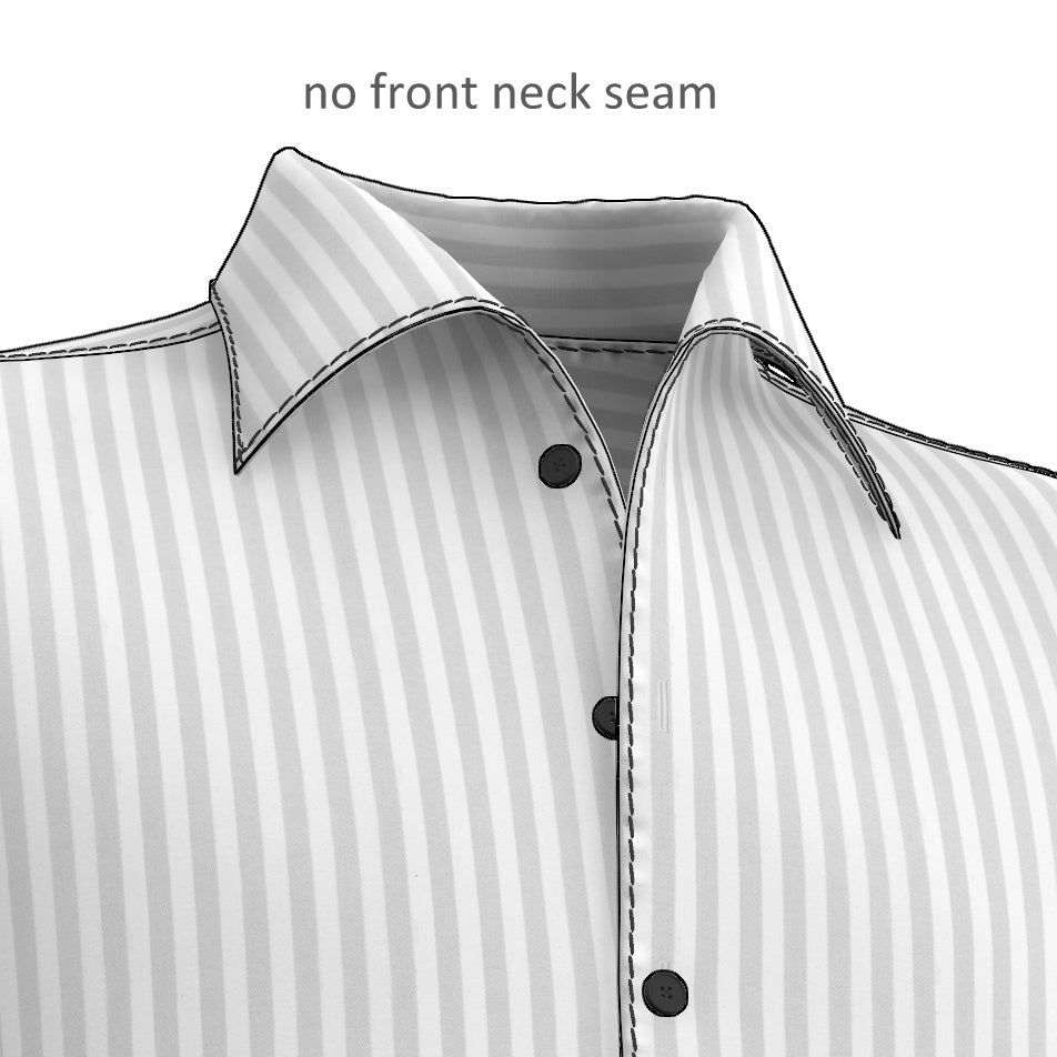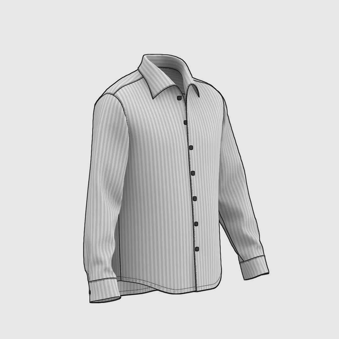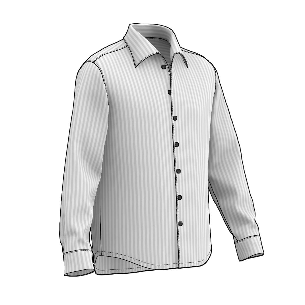 Digital Sewing Pattern and Instructions for sewing a cooper collar shirt. The style has a front button placket, a back yoke, long sleeves with vents and cuffs and a short sleeve option.