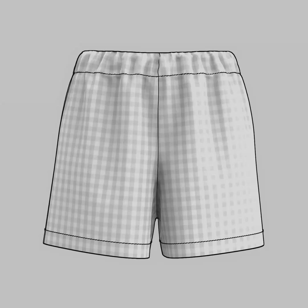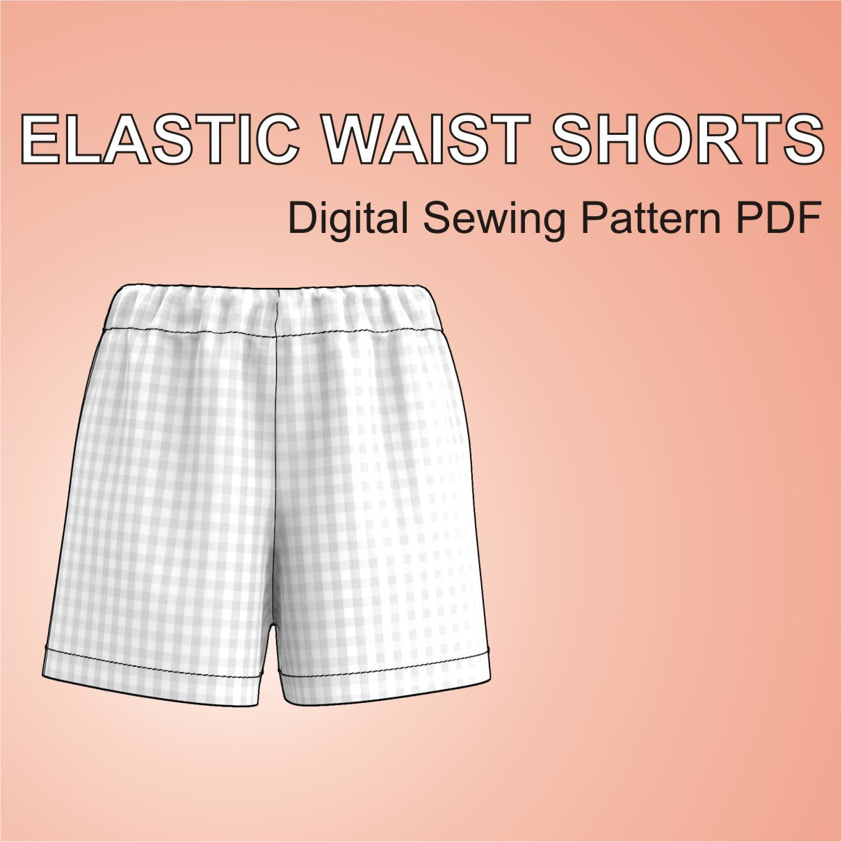 Digital Sewing Pattern and Instructions for sewing elastic waist shorts for women. The elastic waistband design provides a perfect fit for all body types, and with the special workmanship method, you can easily replace the waistband if needed. These shorts are easy to make and perfect for any occasion, from a day at the beach to a night out with friends.