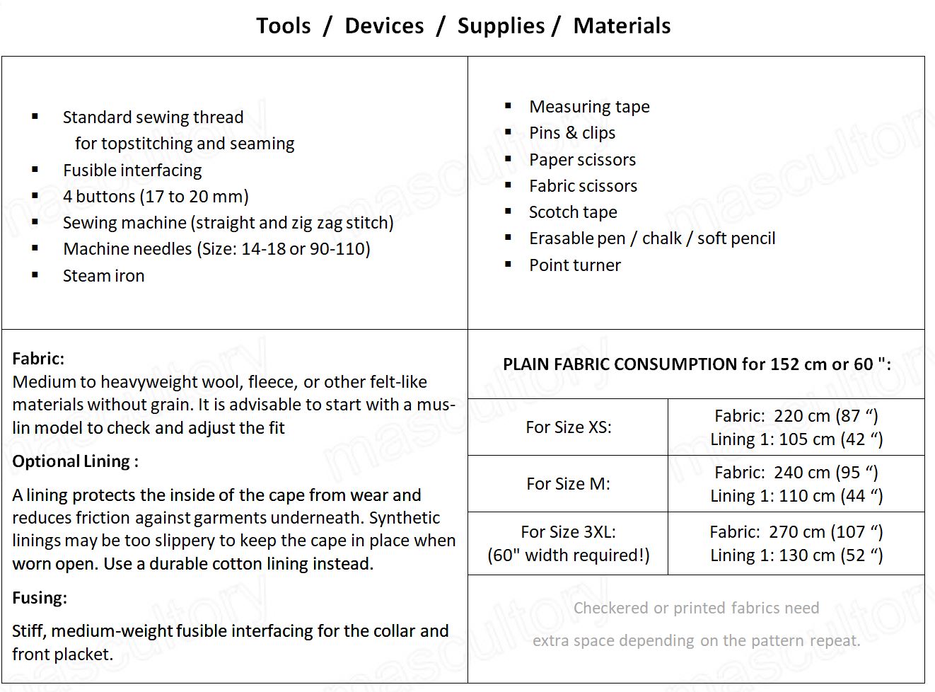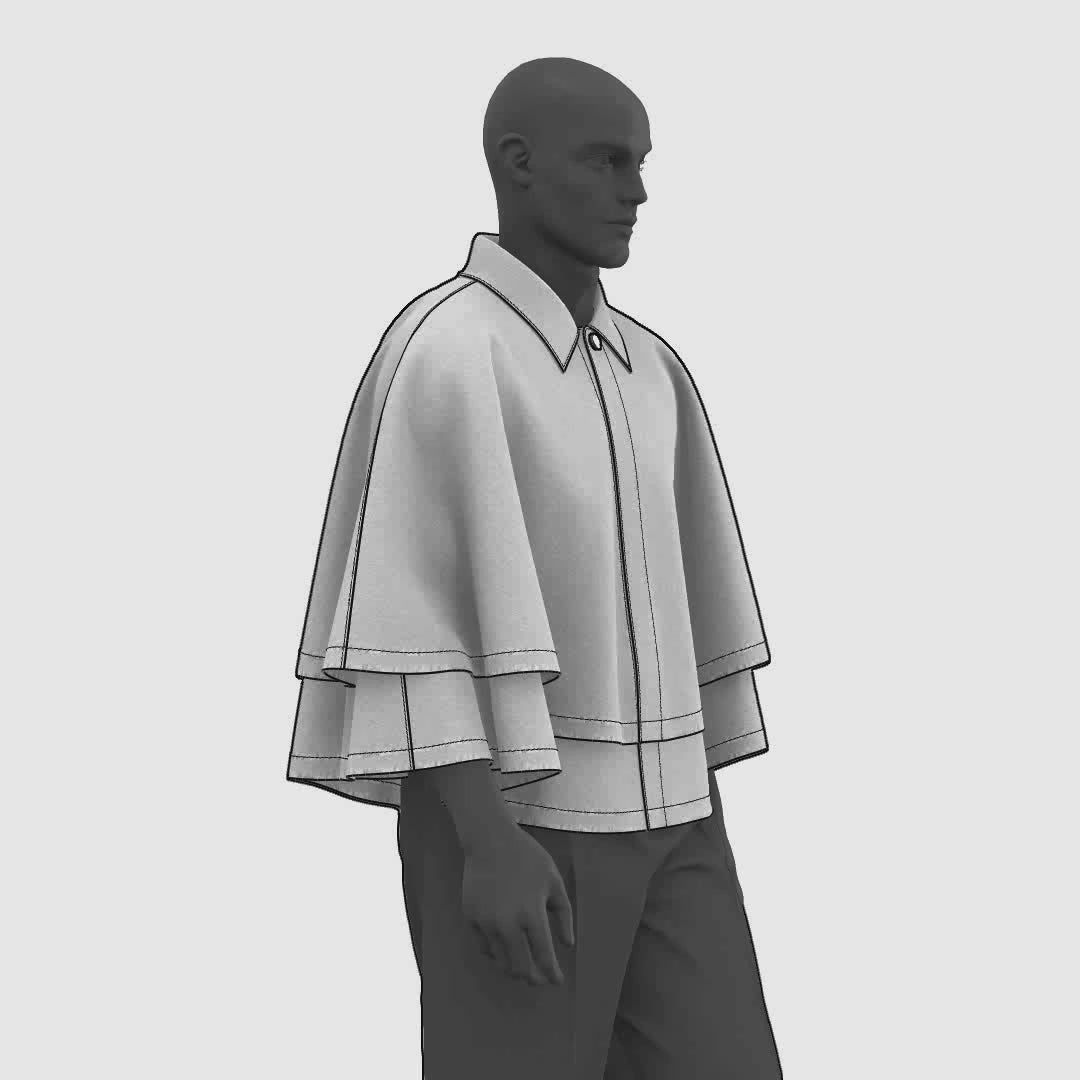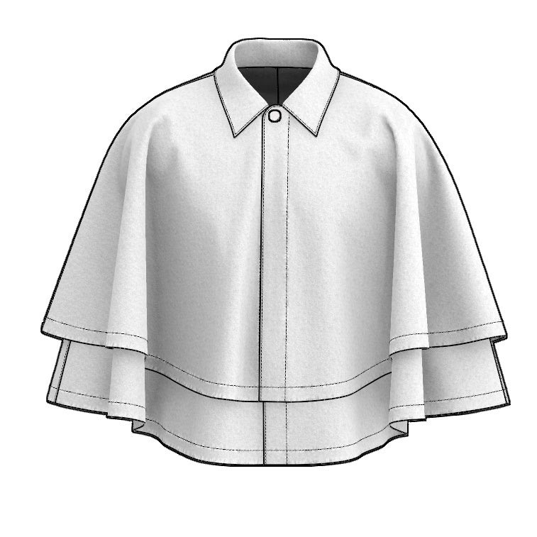Digital Sewing Pattern and Instructions for sewing a double layered Inverness cape with a hidden button placket, a turn-down collar and lining.