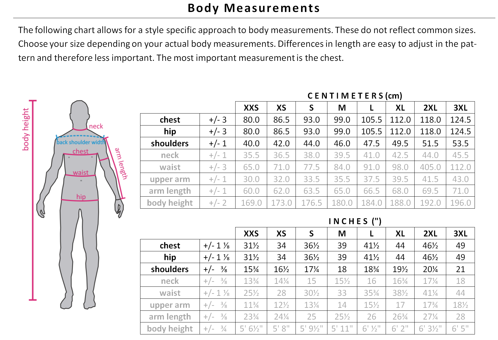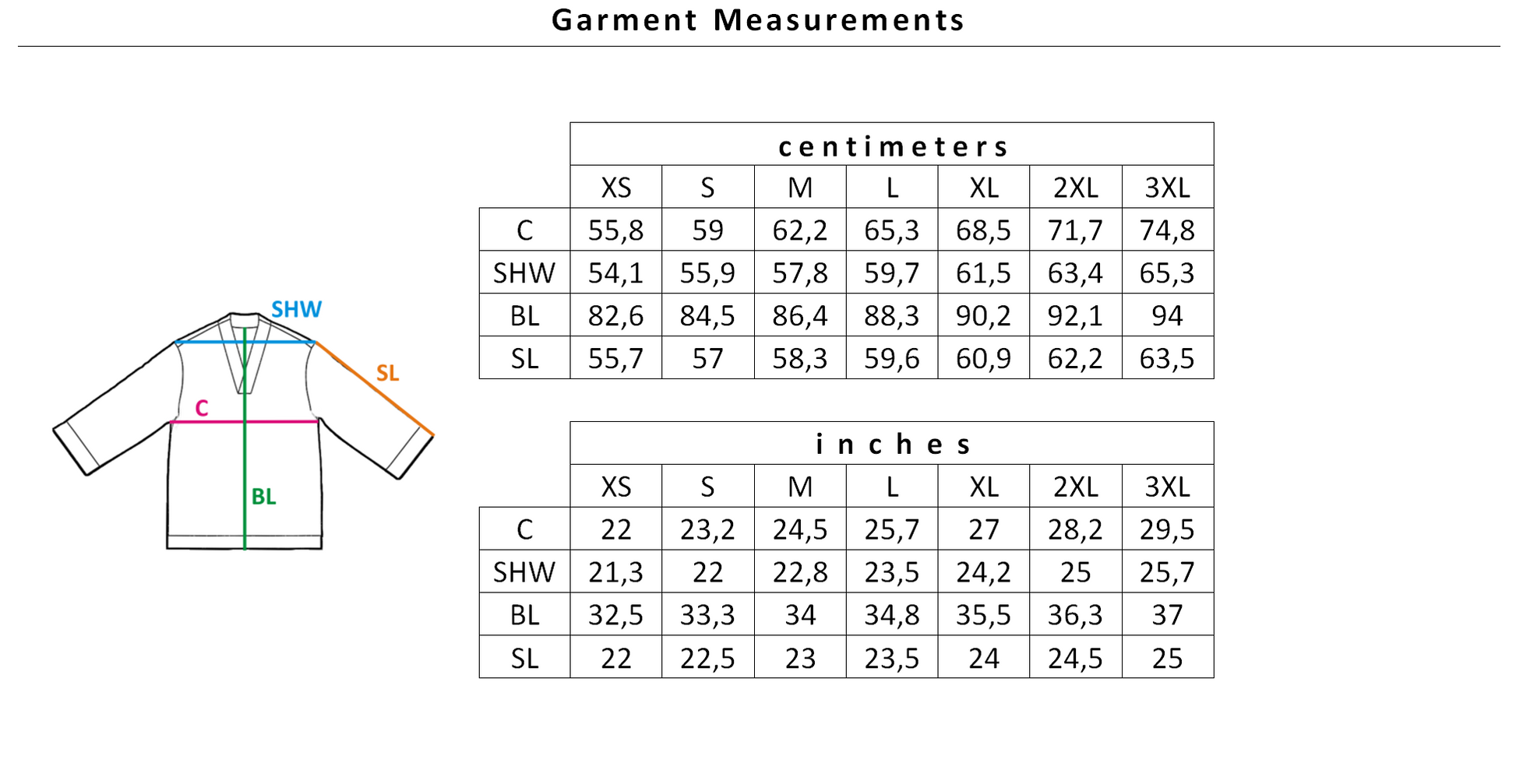 Check the tables to choose your size. Compare your body measurements and the dimensions of your favorite similar garments with the tables in the pictures.