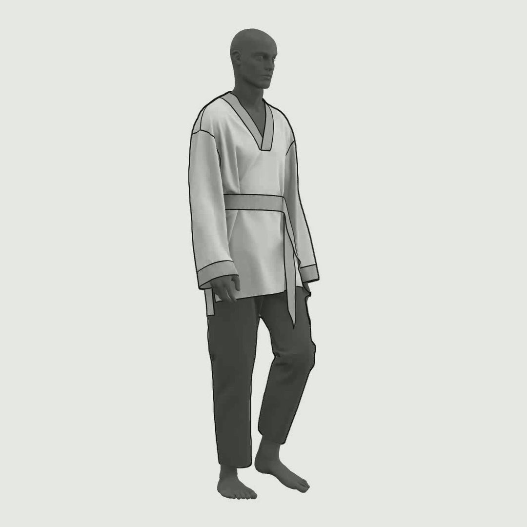Digital Sewing Pattern and Instructions for sewing a tunic. An oversized Style with a shawl collar, cuffs and a belt. Decide whether to use clean and simple cotton and linen fabrics or choose satin and brocade on this style, maybe even embroideries.