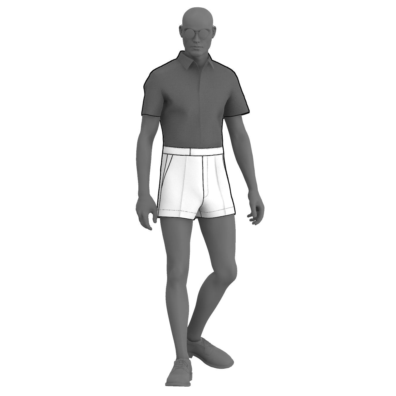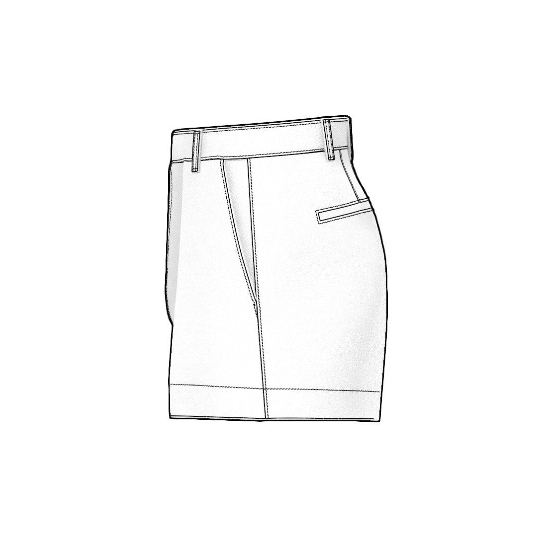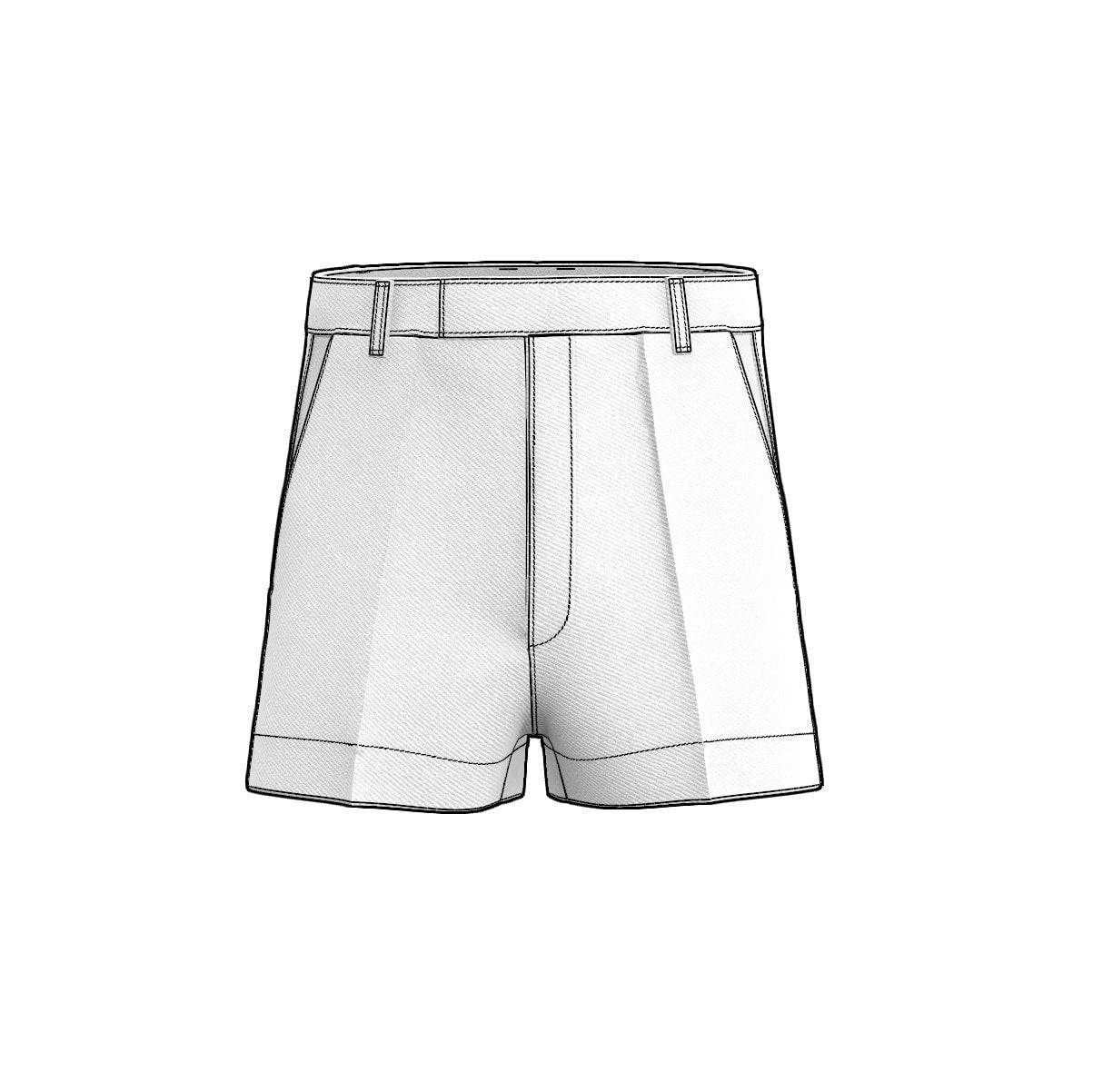 Digital Sewing Pattern and Instructions for sewing Dress Shorts. Modern short pants with front slash pockets, back welt pockets, a straight waistband and belt loops.