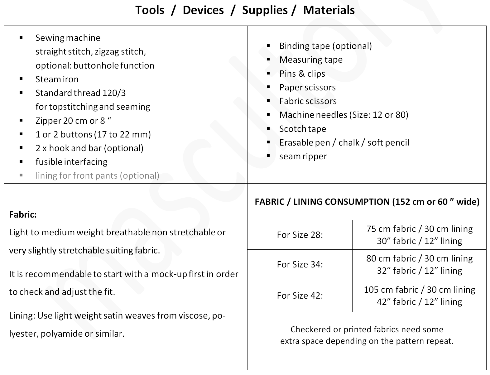 This professional sewing pattern contains all necessary information such as seam allowances, notches and angled corners for an easier workmanship. Illustrated instructions will guide you through the sewing process. The pattern is printable on home printers (A4 or US-Letter). An additional DIN-A0 PDF is provided for using plotter services.