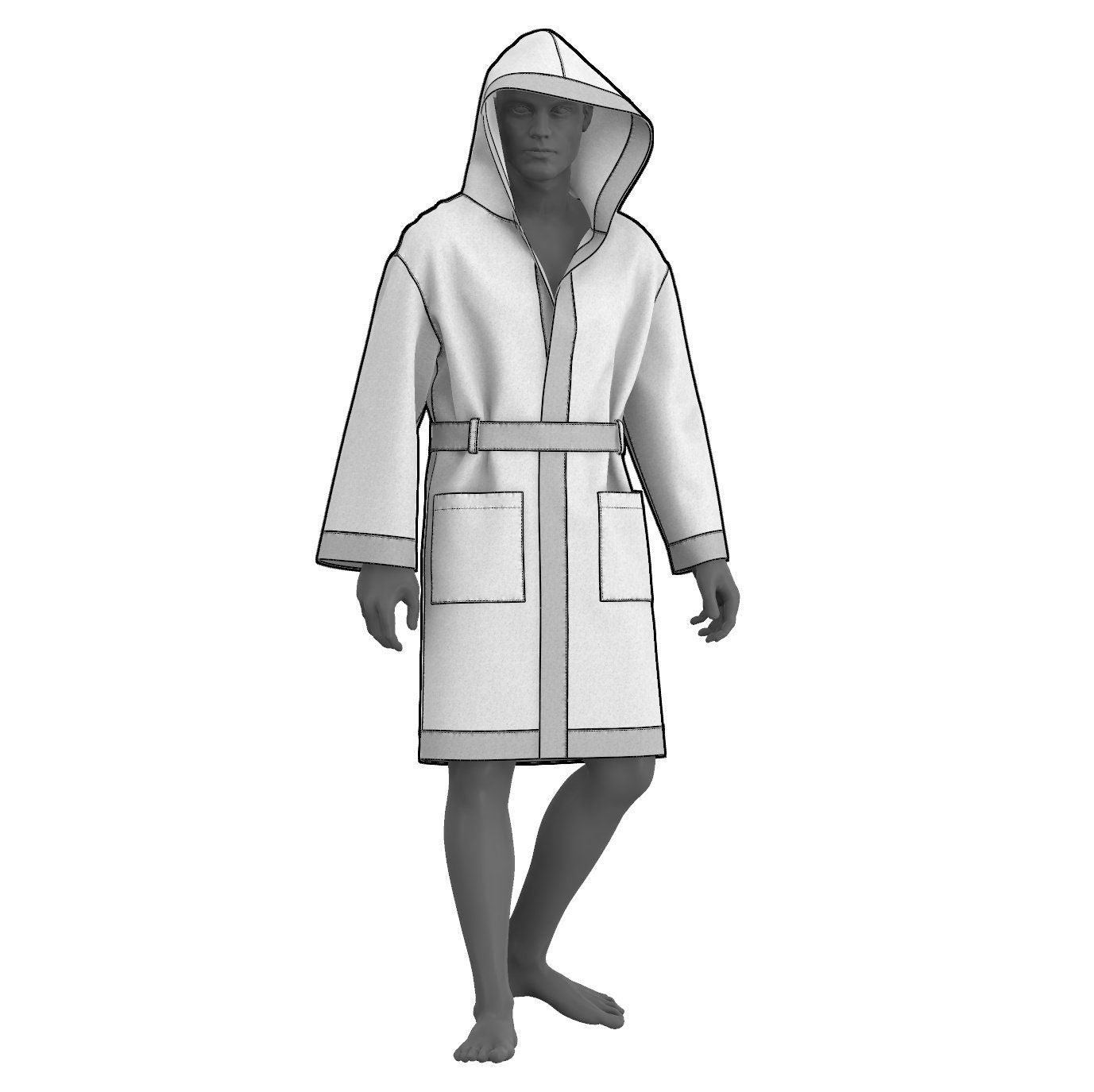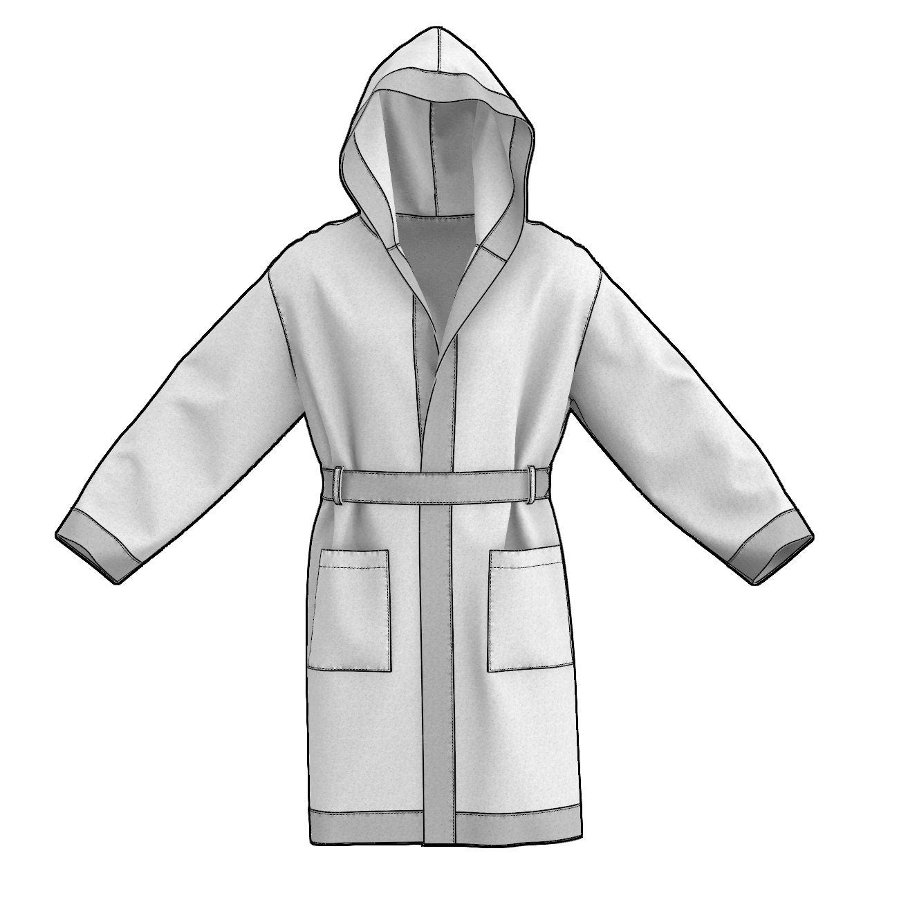 Digital Sewing Pattern and Instructions for sewing a simple Hooded Coat with facings and cuffs. The pattern comes with comprehensive step by step sewing instructions and illustrations.