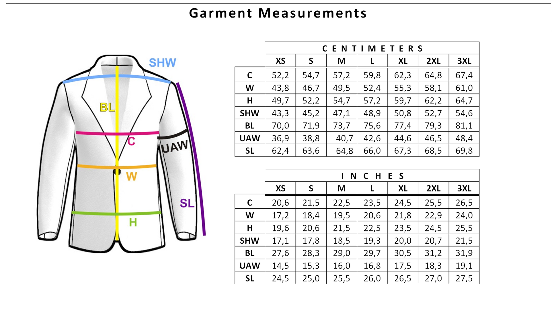 Measure yourself and compare your actual measurements with the body measurement table in the picture section. If your measurements fall between two sizes, choose the larger size.