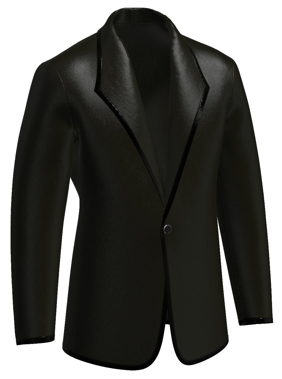 This blazer features a simple style with a peaked shawl collar and no front facings, requiring fabric that looks identical on both sides. Felt, such as 'loden,' is an excellent choice as it is easy to handle and doesn't fray. The design is relatively easy to make since it has no shoulder pads, pockets, or vents.