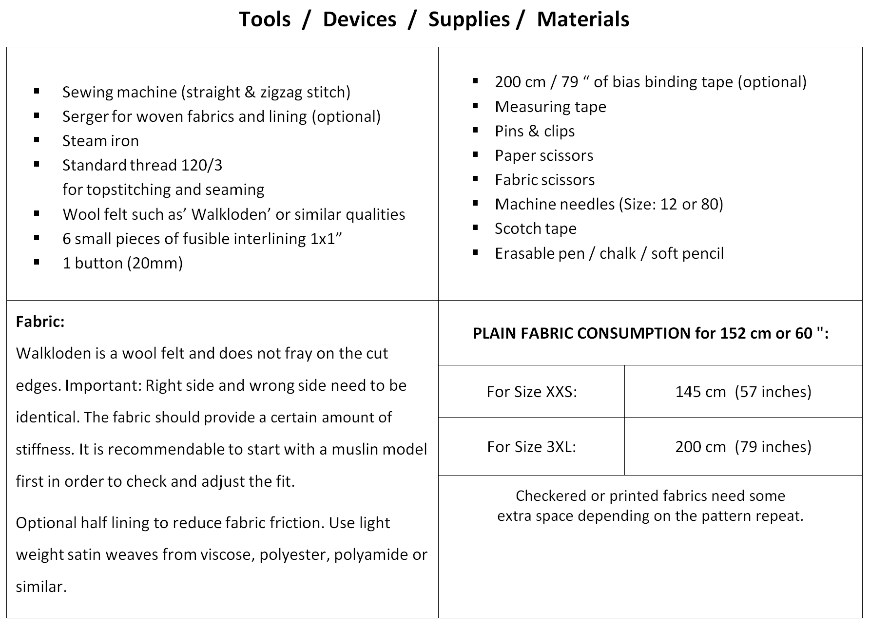 This professional sewing pattern contains all necessary information such as seam allowances, notches and angled corners for an easier workmanship. Illustrated instructions will guide you through the sewing process. The pattern is printable on home printers (A4 or US-Letter). An additional DIN-A0 PDF is provided for using plotter services.